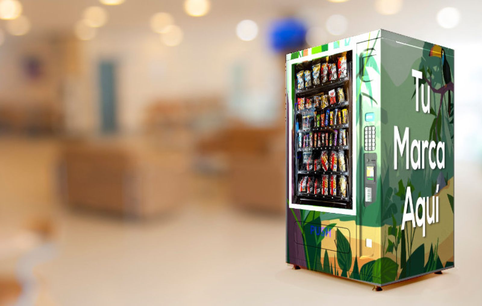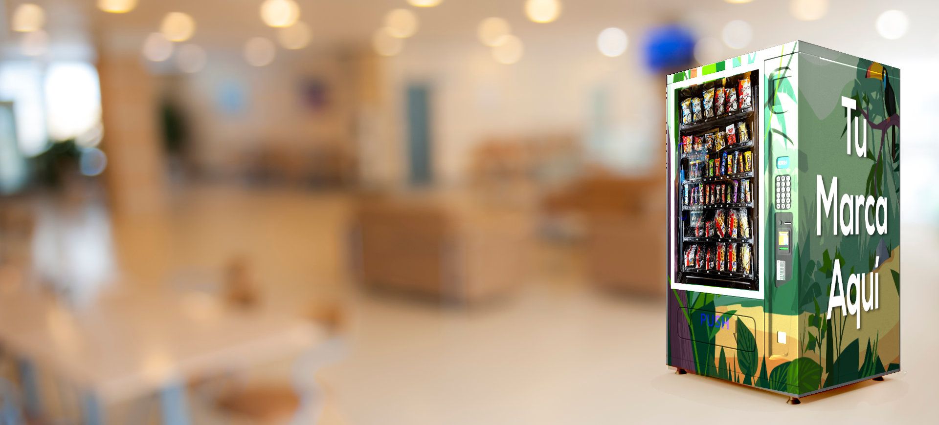 Máquinas expendedoras con tu logo en tu oficina, taller, sala de espera o donde desees. -